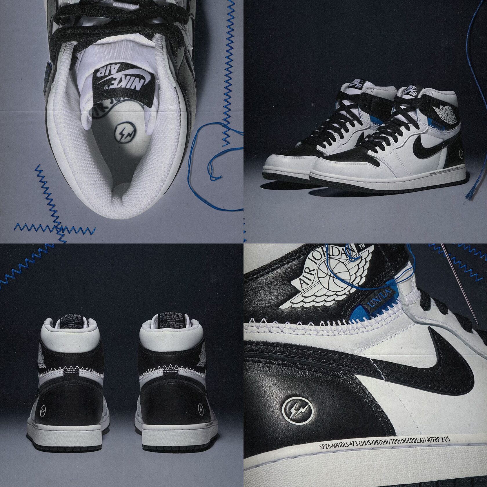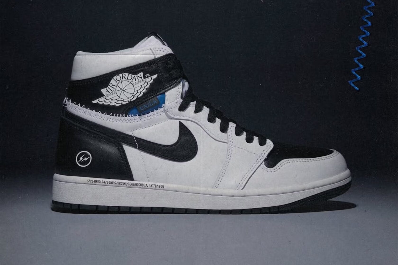 Минималистичная графичная палитра подчёркивает силуэт AJ1, убирая всё лишнее. Здесь нет оттенков navy или royal blue — fragment сознательно отказывается от своих привычных акцентов, оставляя только контекст и подпись: тиснёную молнию на пятке.
